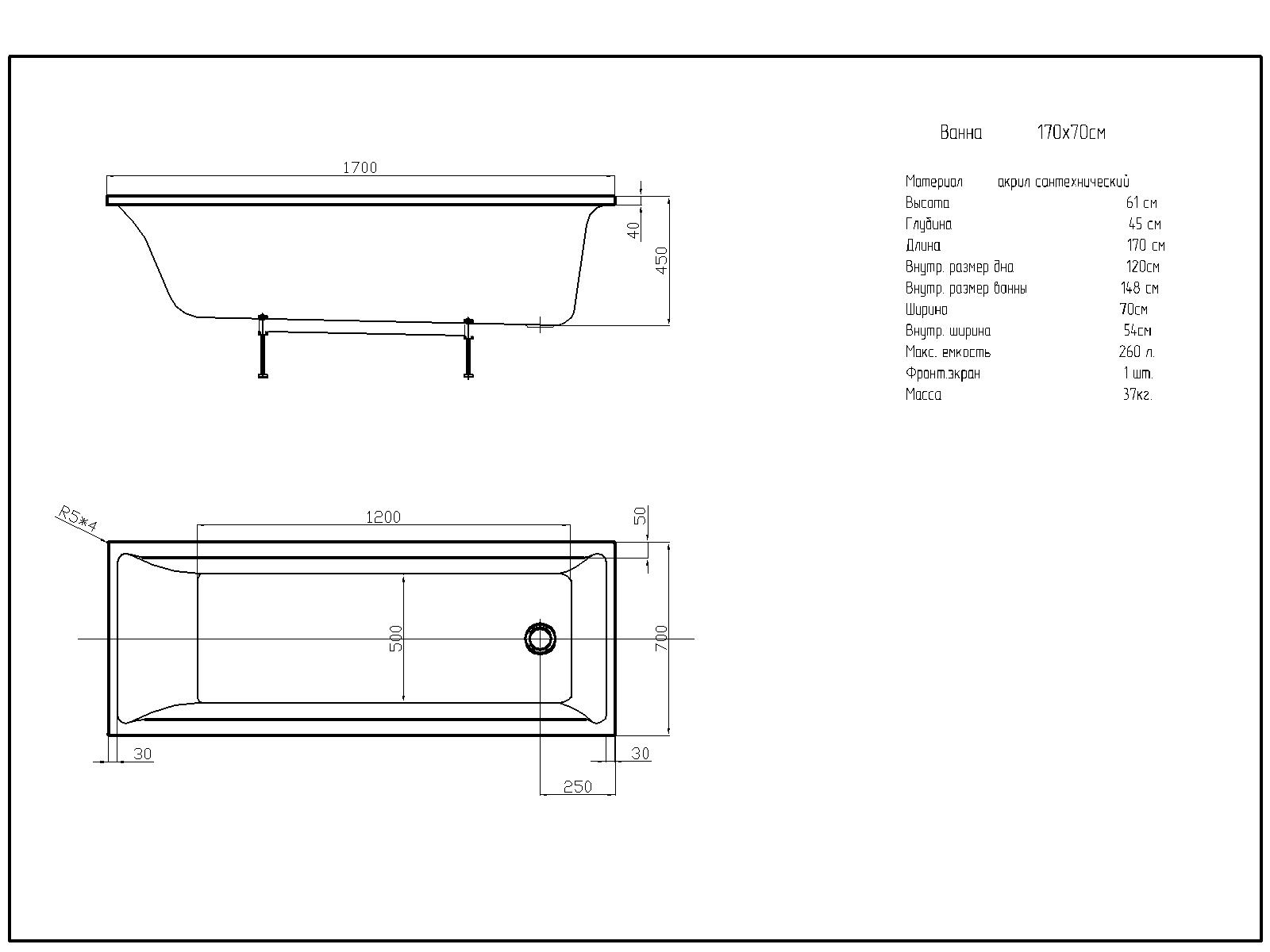 Прямоугольная акриловая ванна Акватек Eco-friendly Лайма 170x70 см LAI170-0000001