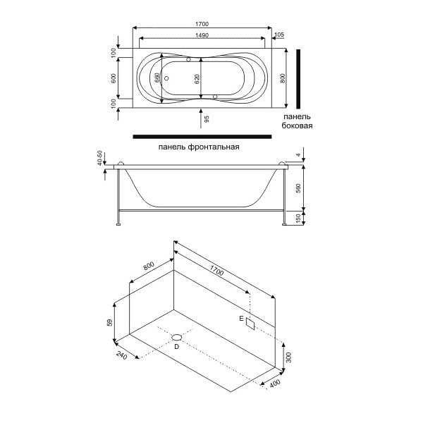 | Оснащение | Ванна+каркас/ отдельно заказываются слив-перелив, экран, г/м |