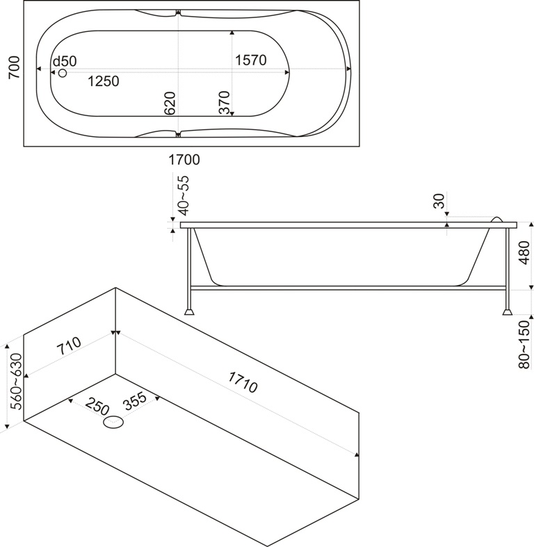 | Оснащение | Ванна+каркас/ отдельно заказываются слив-перелив, экран, г/м |