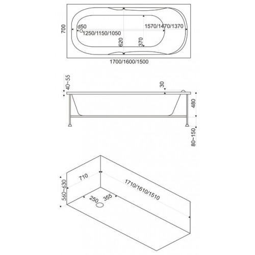 | Оснащение | Ванна в разборе/ требуется каркас, слив-перелив |