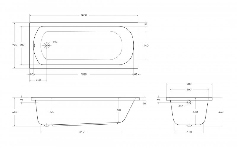 Прямоугольная акриловая ванна Cezares Eco 165х70 см ECO-165-70-41-W37