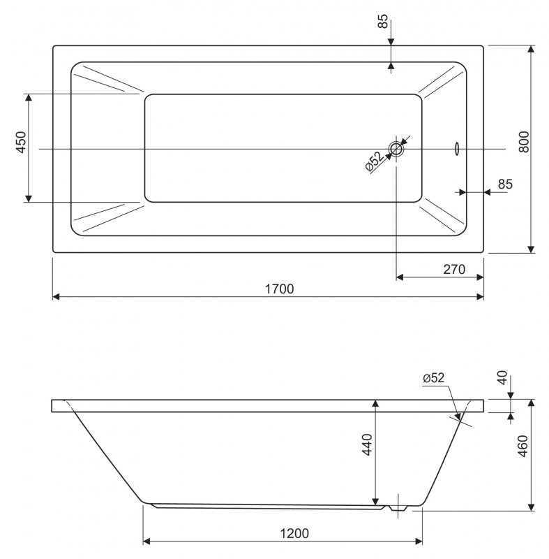 Прямоугольная акриловая ванна Cezares Plane Solo 180х80 см PLANE SOLO-180-80-49-W37