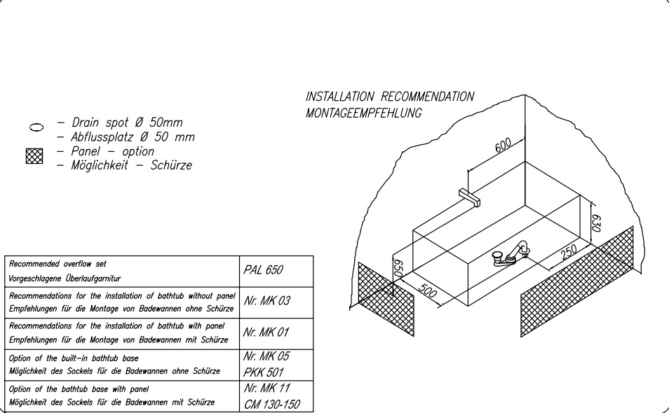 | Собранная ванна на каркасе со сливом-переливом | ||||||