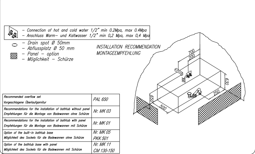 | Собранная ванна на каркасе со сливом-переливом, | ||||||