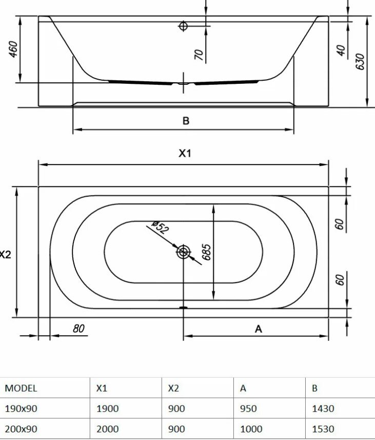 | Собранная ванна на каркасе со сливом-переливом | ||||||