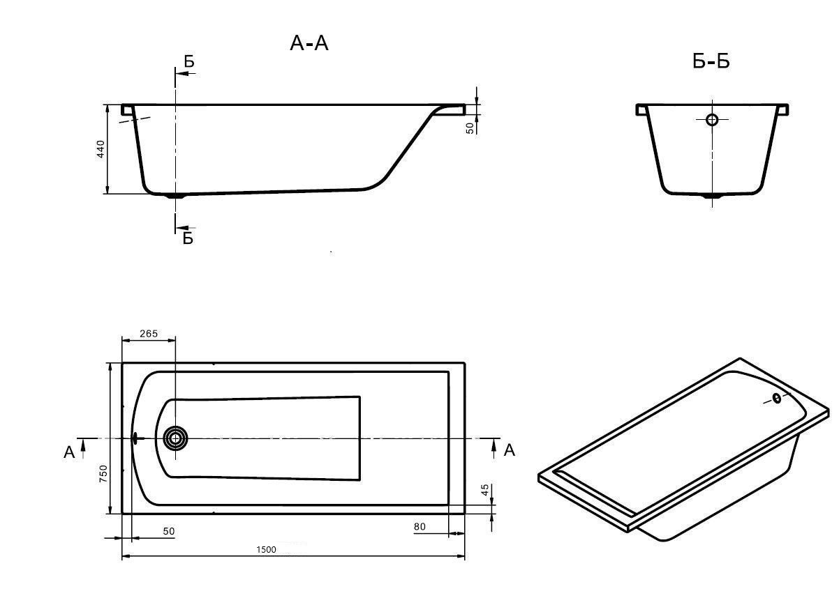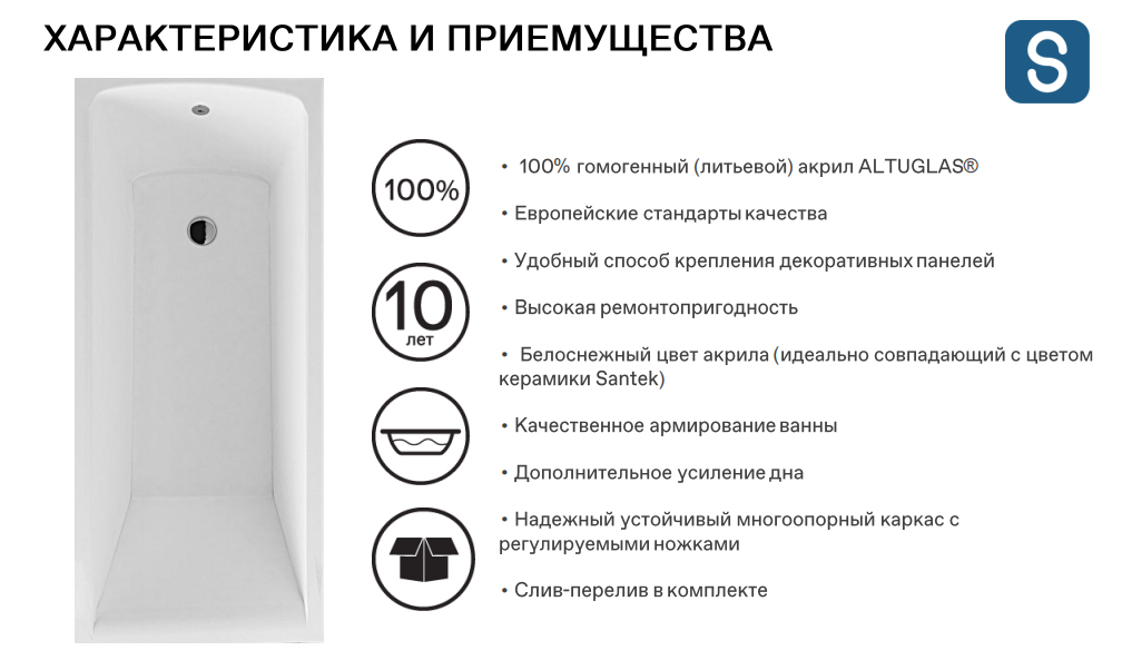 Прямоугольная акриловая ванна Santek Фиджи 150х75 см 1.WH50.1.598