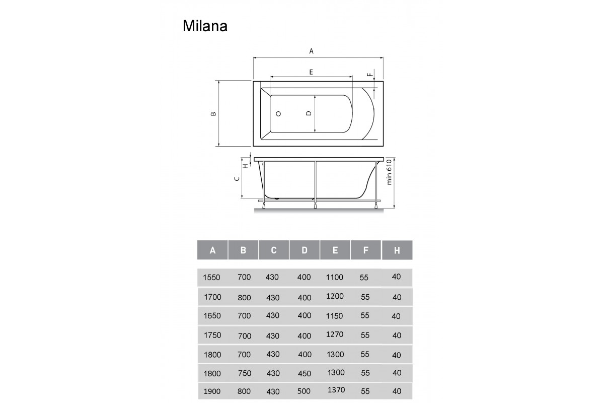 Прямоугольная акриловая ванна Vayer Milana 175х70 см Гл000024272
