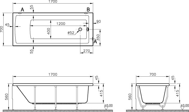 Прямоугольная акриловая ванна Vitra Neon 170х70 см 52530001000