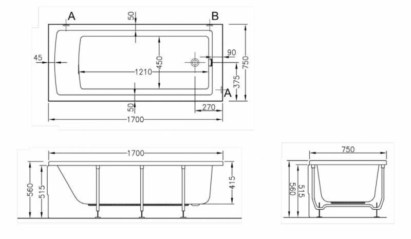 Прямоугольная акриловая ванна Vitra Neon 170х75 см 52280001000