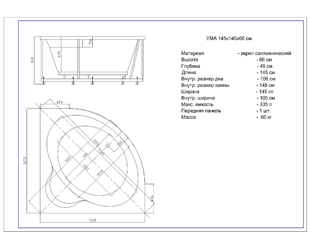 Угловая акриловая ванна Акватек Eco-friendly Ума 145х145 см UMA145-0000001