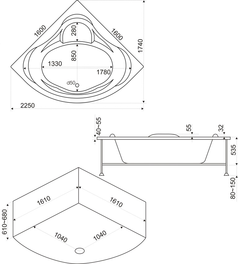 | Оснащение | Ванна+каркас/ отдельно заказываются слив-перелив, экран, г/м |