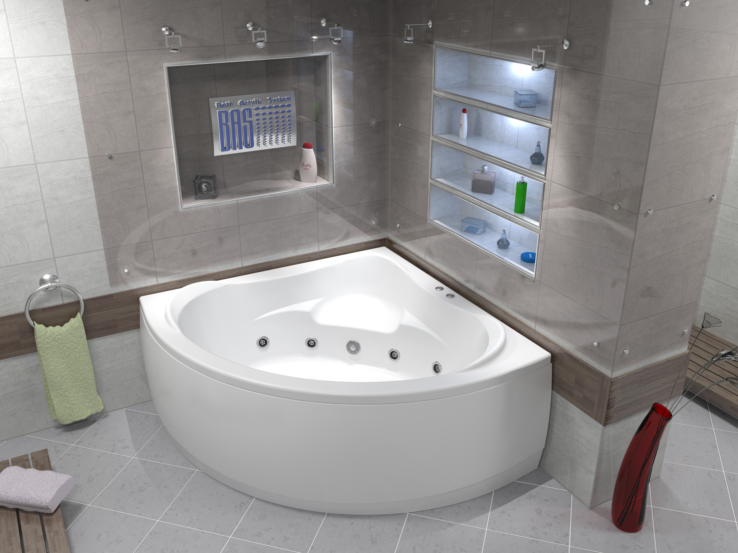 Угловая акриловая ванна BAS Мега 160х160 см, с каркасом В 00024