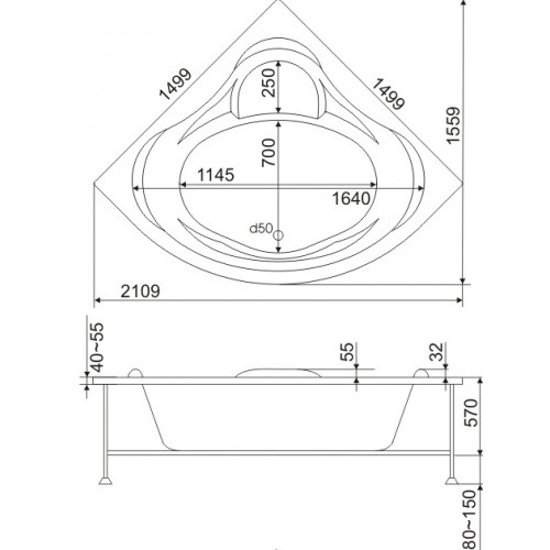 | Оснащение | Ванна+каркас/ отдельно заказываются слив-перелив, экран, г/м |