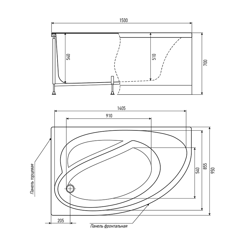 Ванна акриловая Alex Baitler NERO L 150*95/ NERO R 150*95