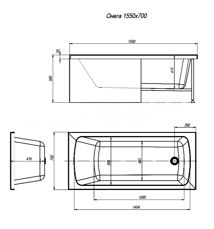 Ванна акриловая Alex Baitler ONEGA 155*70