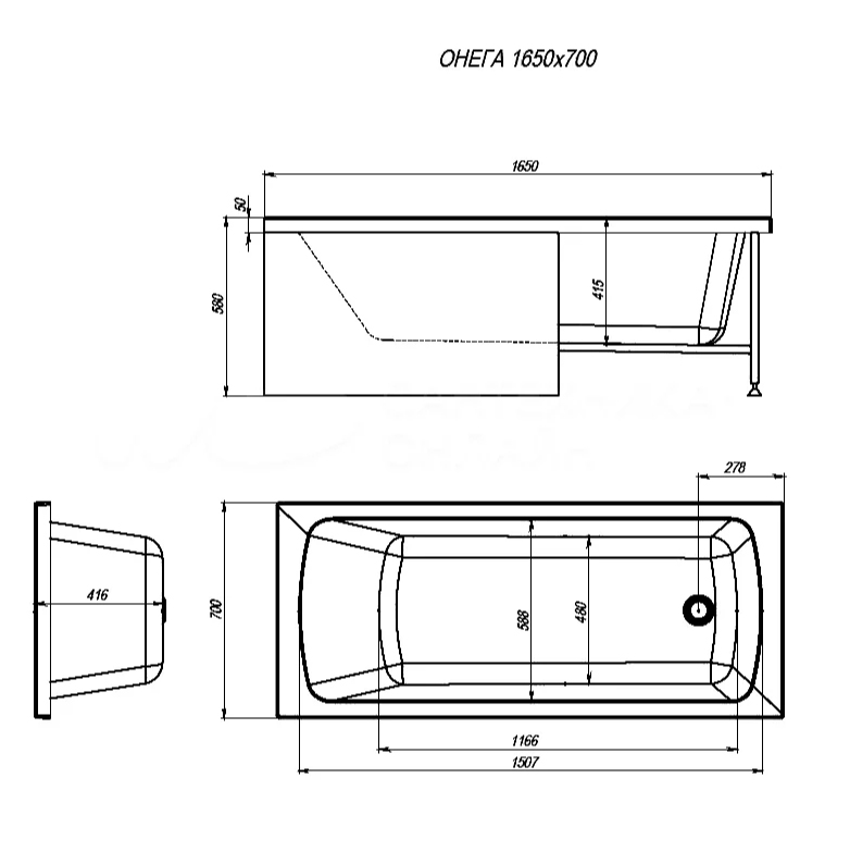 Ванна акриловая Alex Baitler ONEGA 165*70