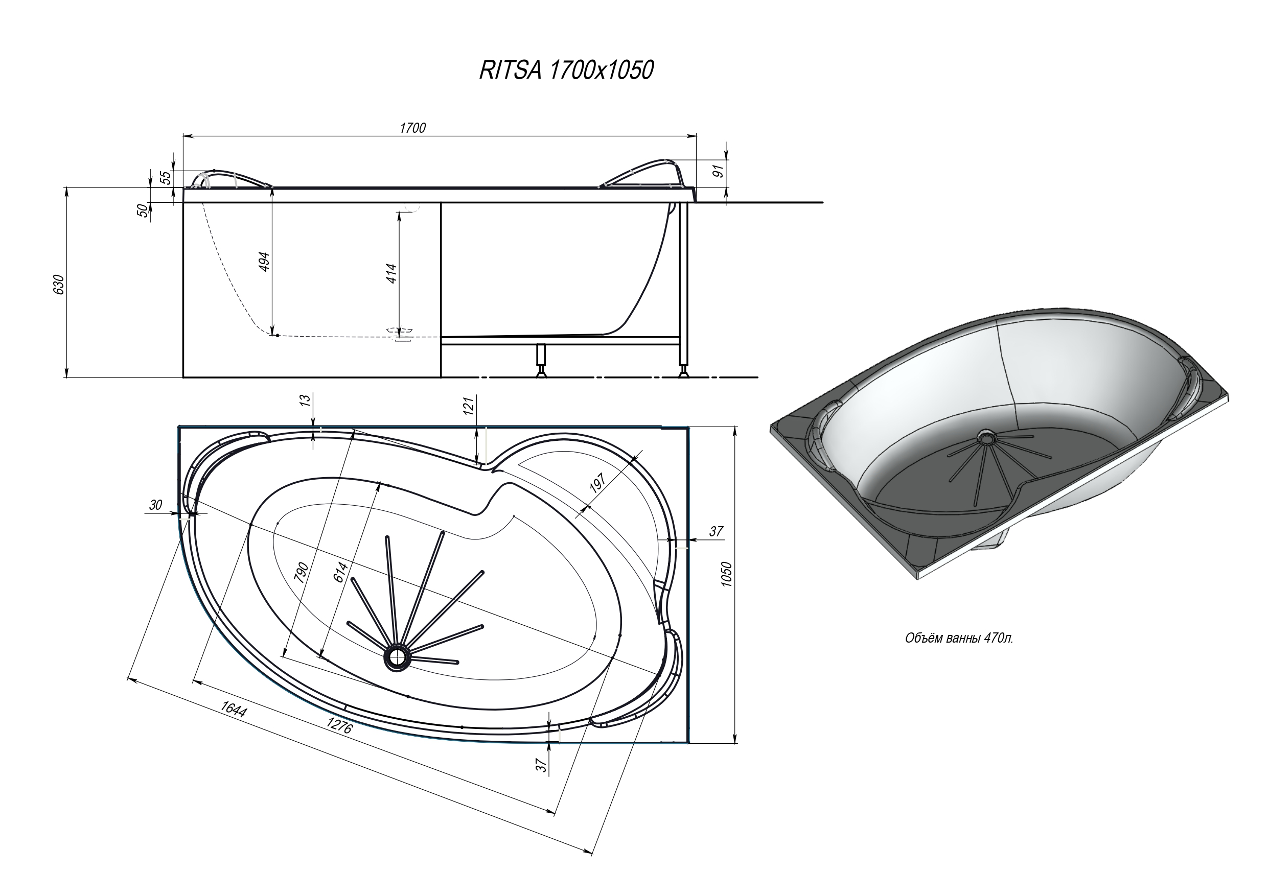 Ванна акриловая Alex Baitler RITSA L 170*105/ RITSA R 170*105