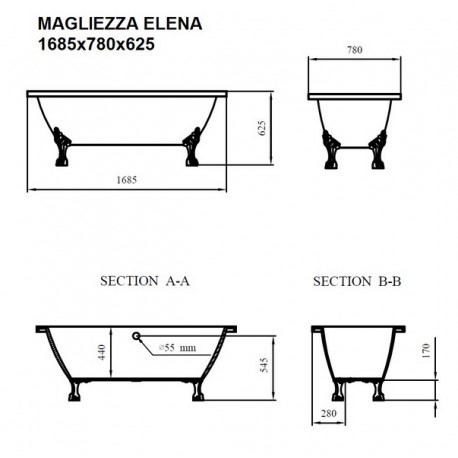 Ванна акриловая Magliezza Elena 168,5х78 ELENA CR