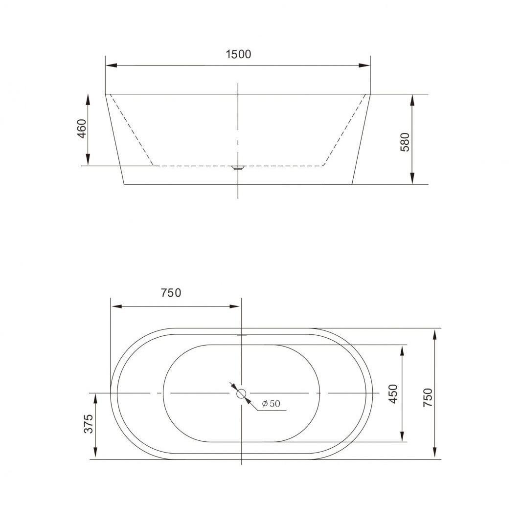 Ванна акриловая отдельностоящая Art&Max 150х75 см AM-203-1500-750