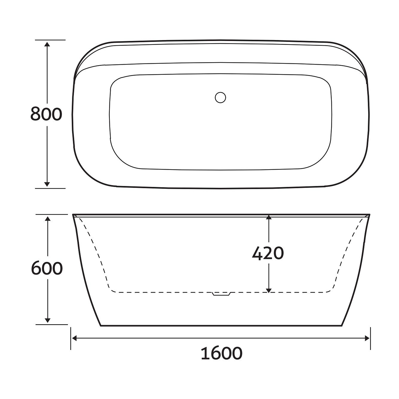 Ванна акриловая отдельностоящая Art&Max 160х80 см AM-316-1600-800