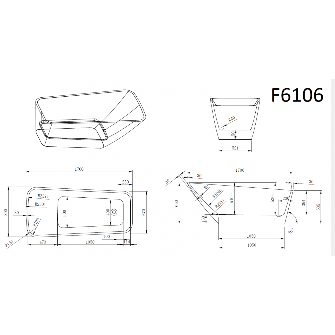 Ванна акриловая отдельностоящая Frank F6106 White 170х80 см 12517