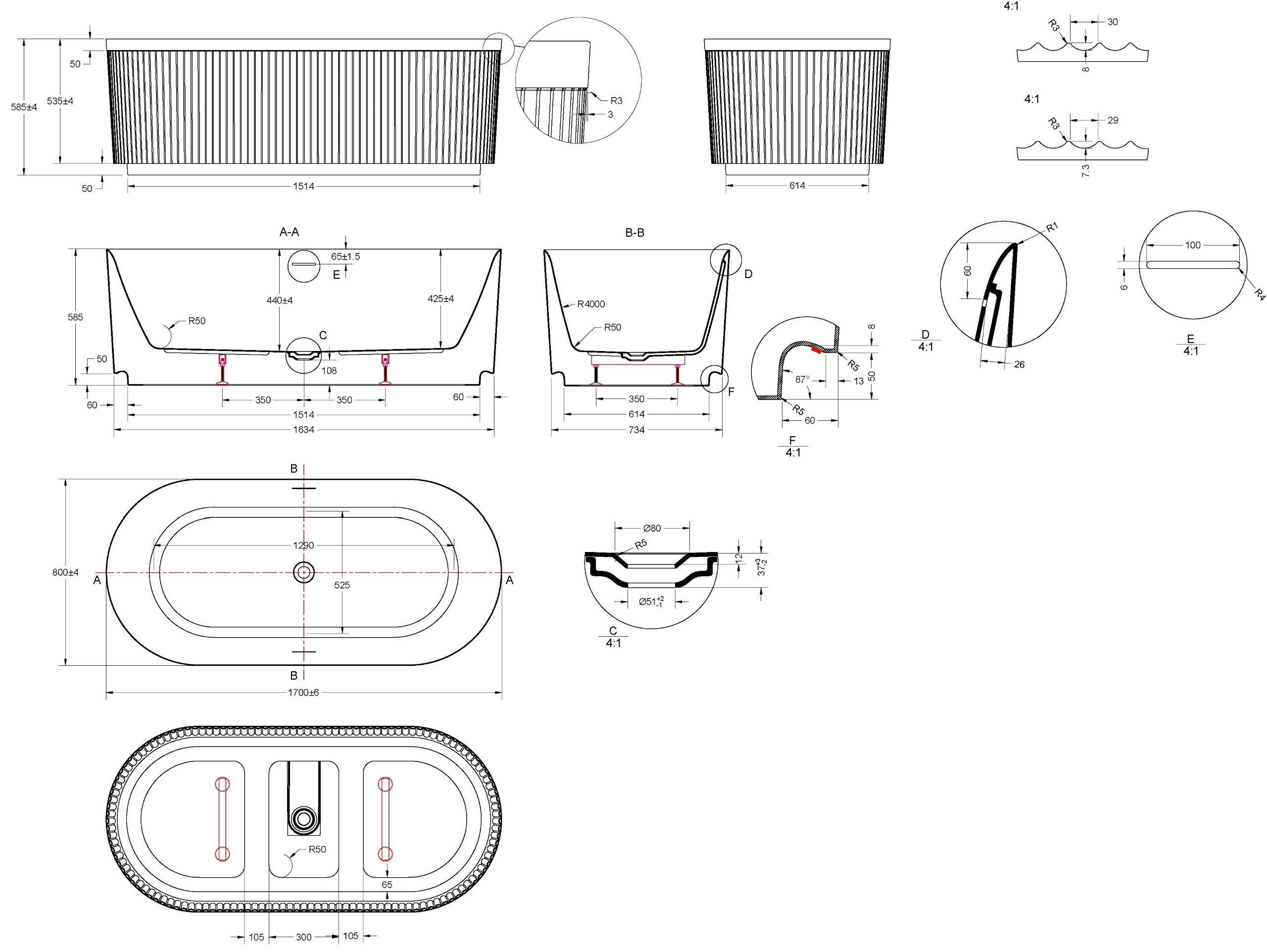 | Оснащение | Сифон с гидрозатвором в комплекте, щелевой перелив |