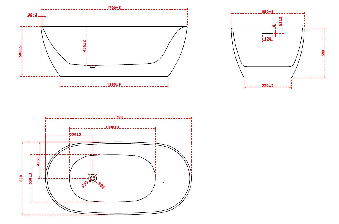 Ванна акриловая отдельностоящая Vincea 170х80 см VBT-601-1700