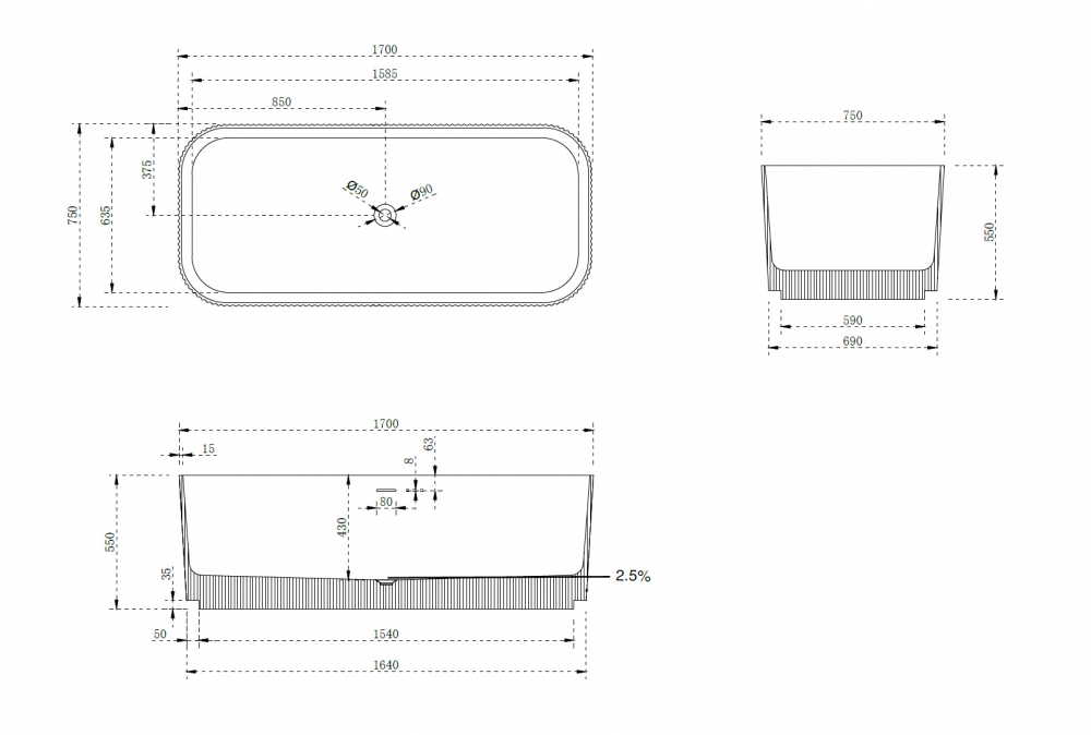 - Ванна из искусственного камня Abber Stein 170х75 см белый матовый AS9663