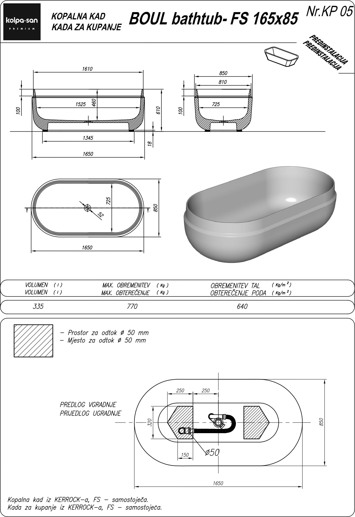 Отдельностоящая каменная ванна Kolpa-san Kerrock Boul Bathtub FS 165x85 см WHITE 591560