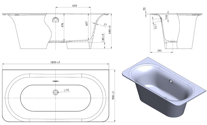 Ванна из литьевого мрамора Astra-Form Прима 185х90 см 01010037