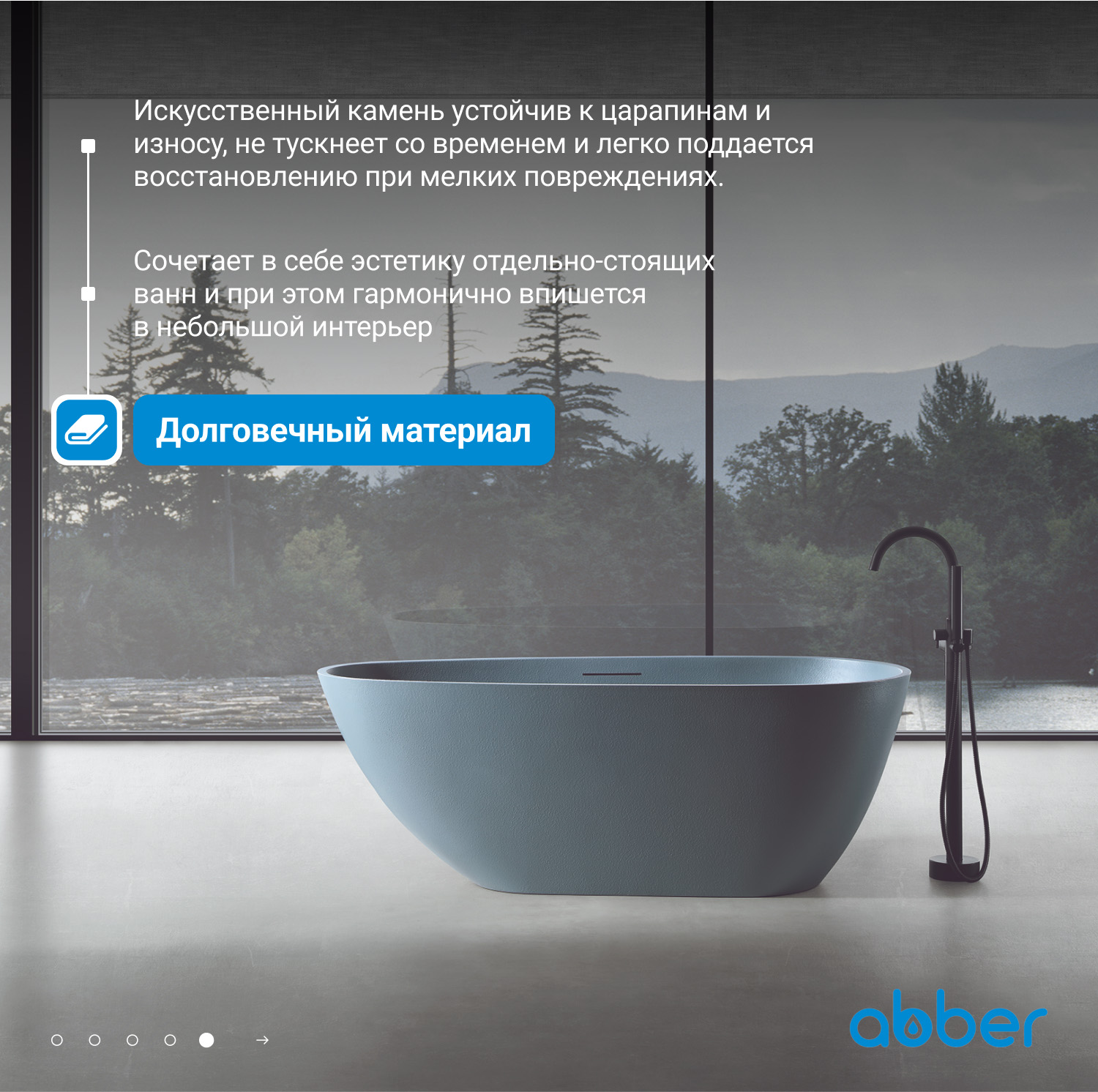 Ванна из искусственного камня ABBER Dortmund 170х75 см серый матовый AM9911G