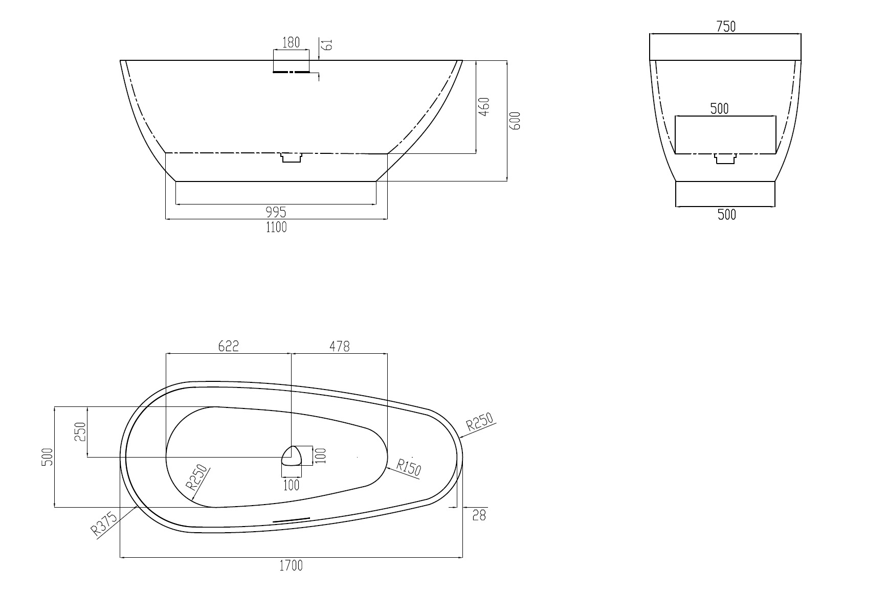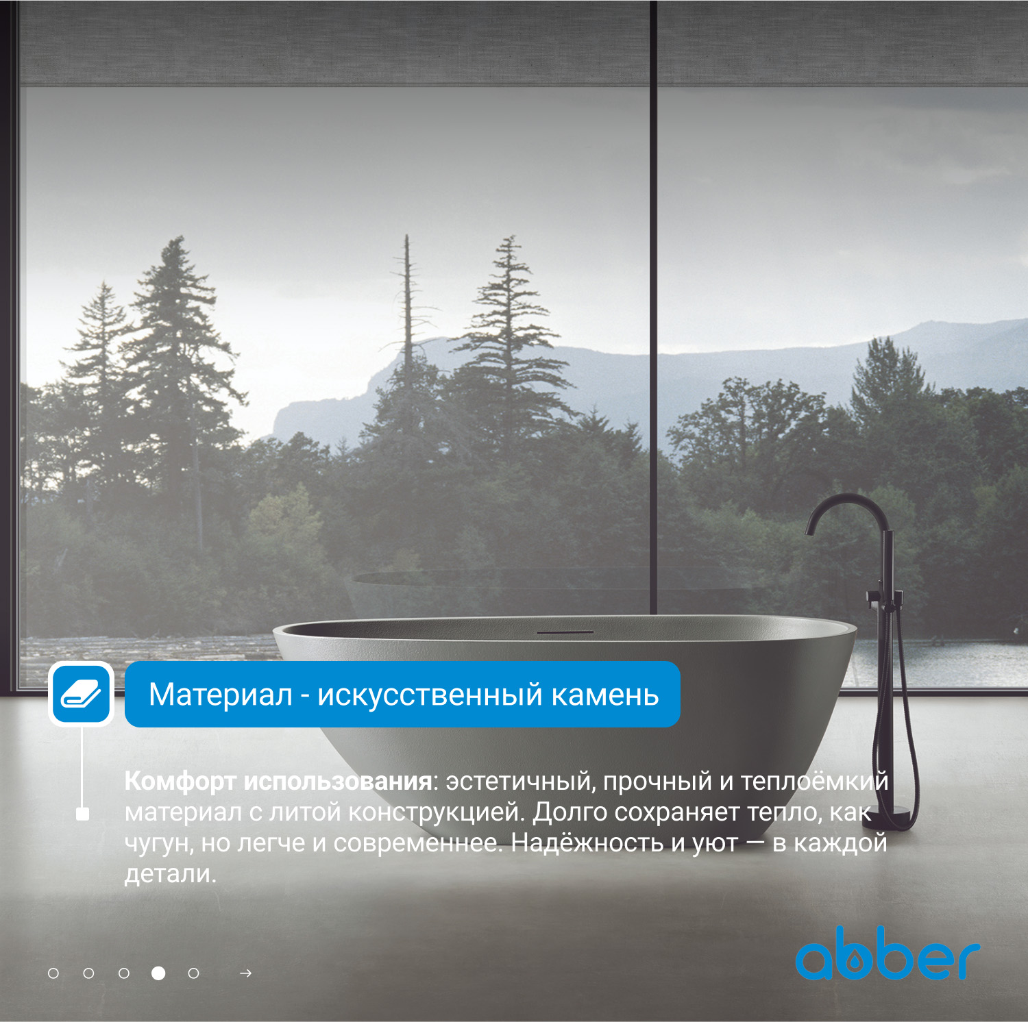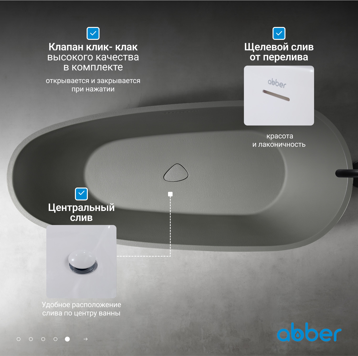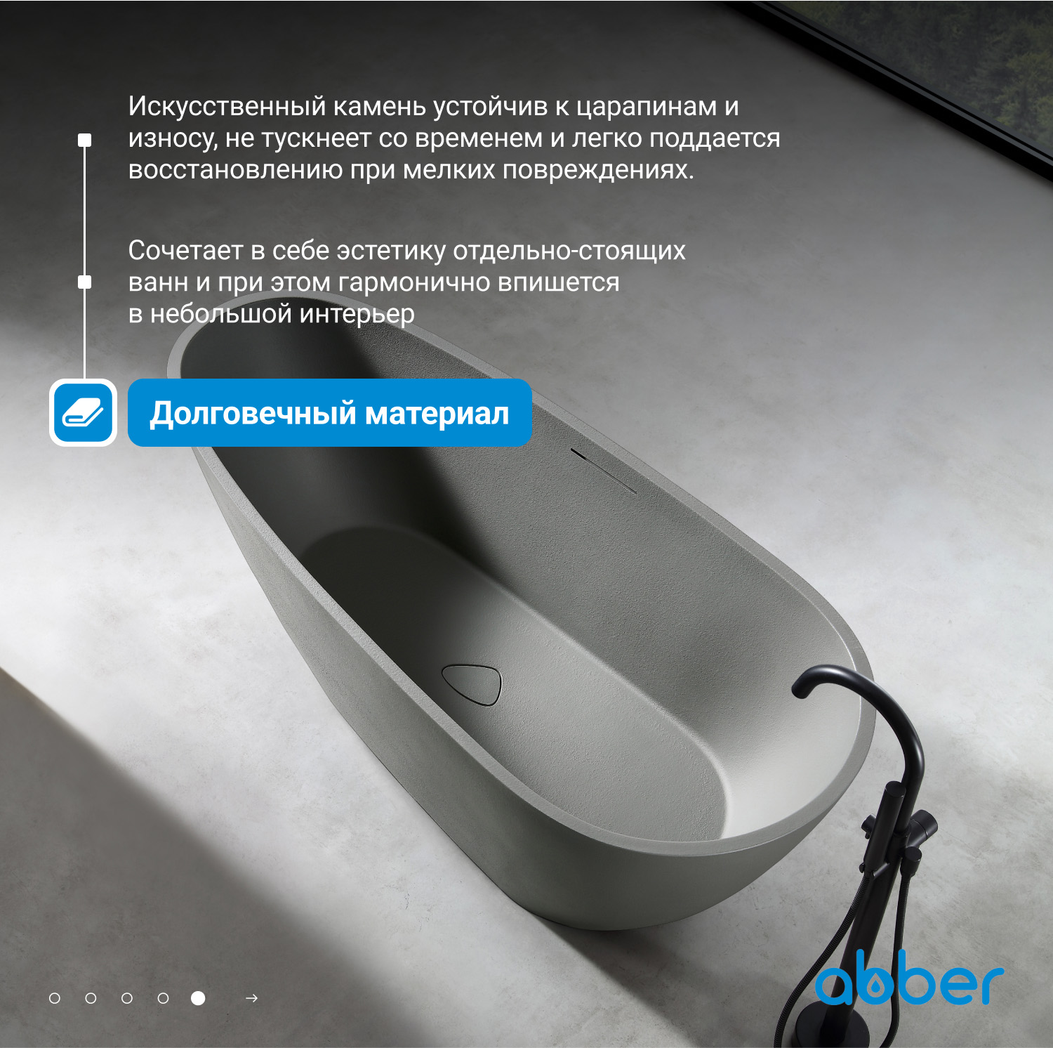 Ванна из искусственного камня ABBER Dortmund 170х75 см светло-серый матовый AM9911MLG