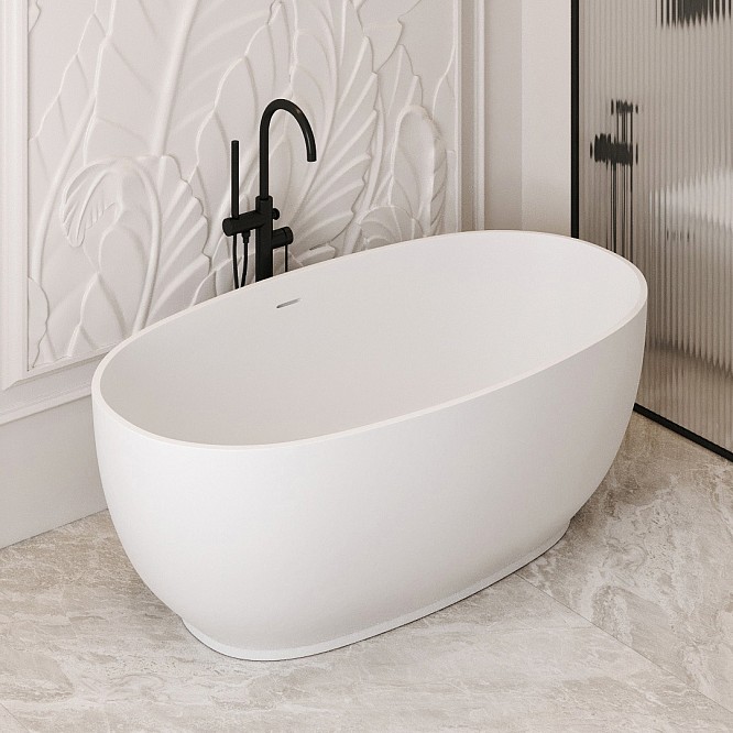 - Ванна из искусственного камня ABBER Stein 150х78 см белый матовый AS9641-1.5