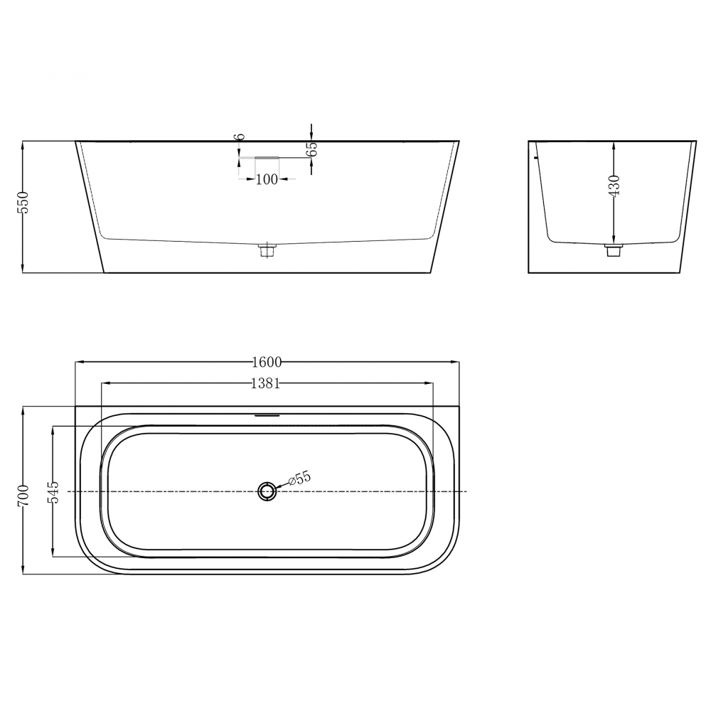 - Ванна из искусственного камня ABBER Stein 160х70 см белый матовый AS9682