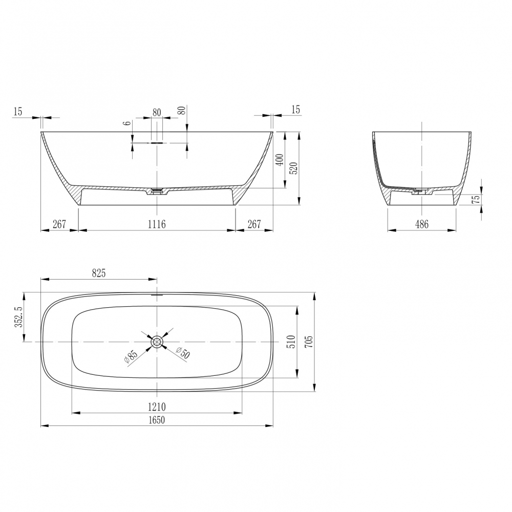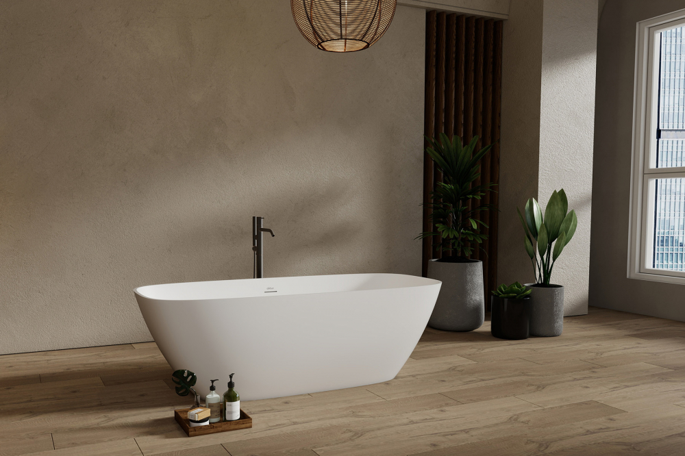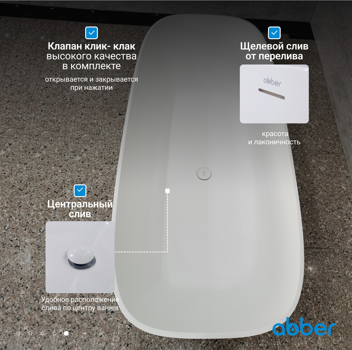 - Ванна из искусственного камня ABBER Stein 165х70,5 см белый матовый AS9632