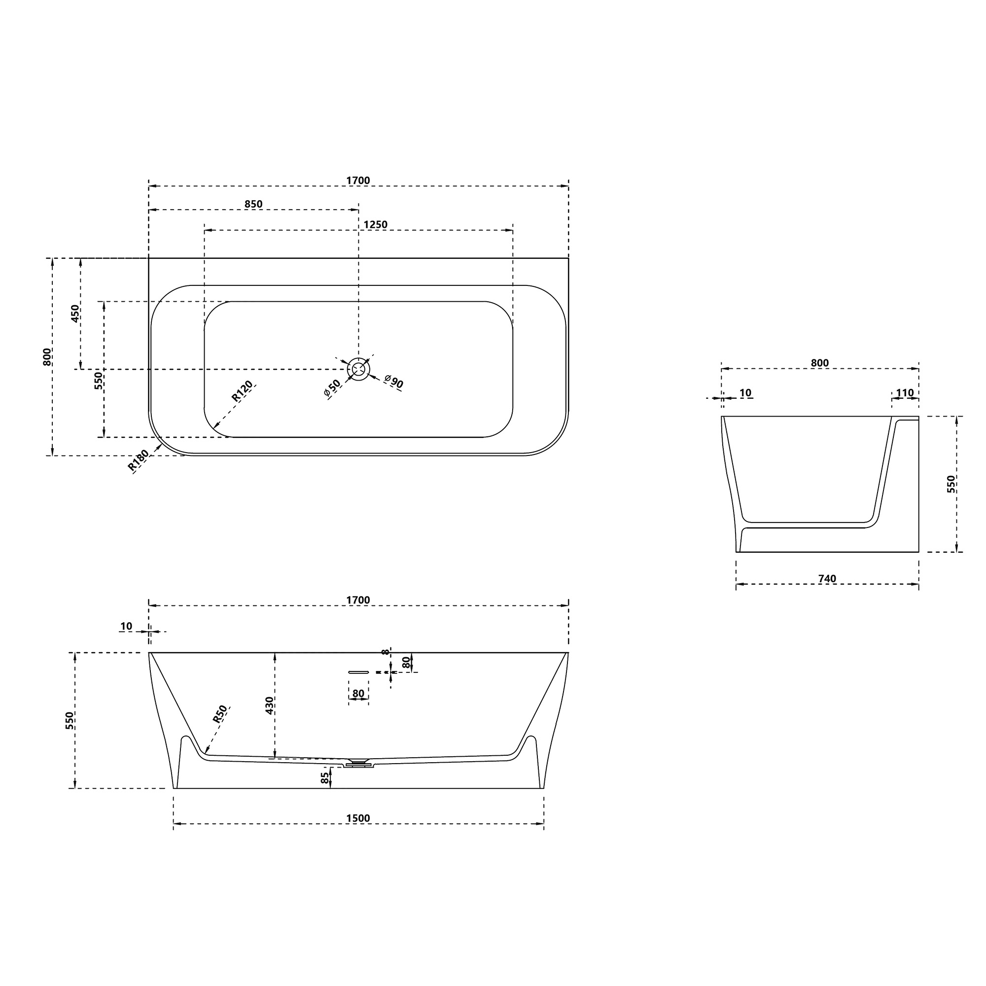- Ванна из искусственного камня Abber Stein 170х80 см белый матовый AS9616