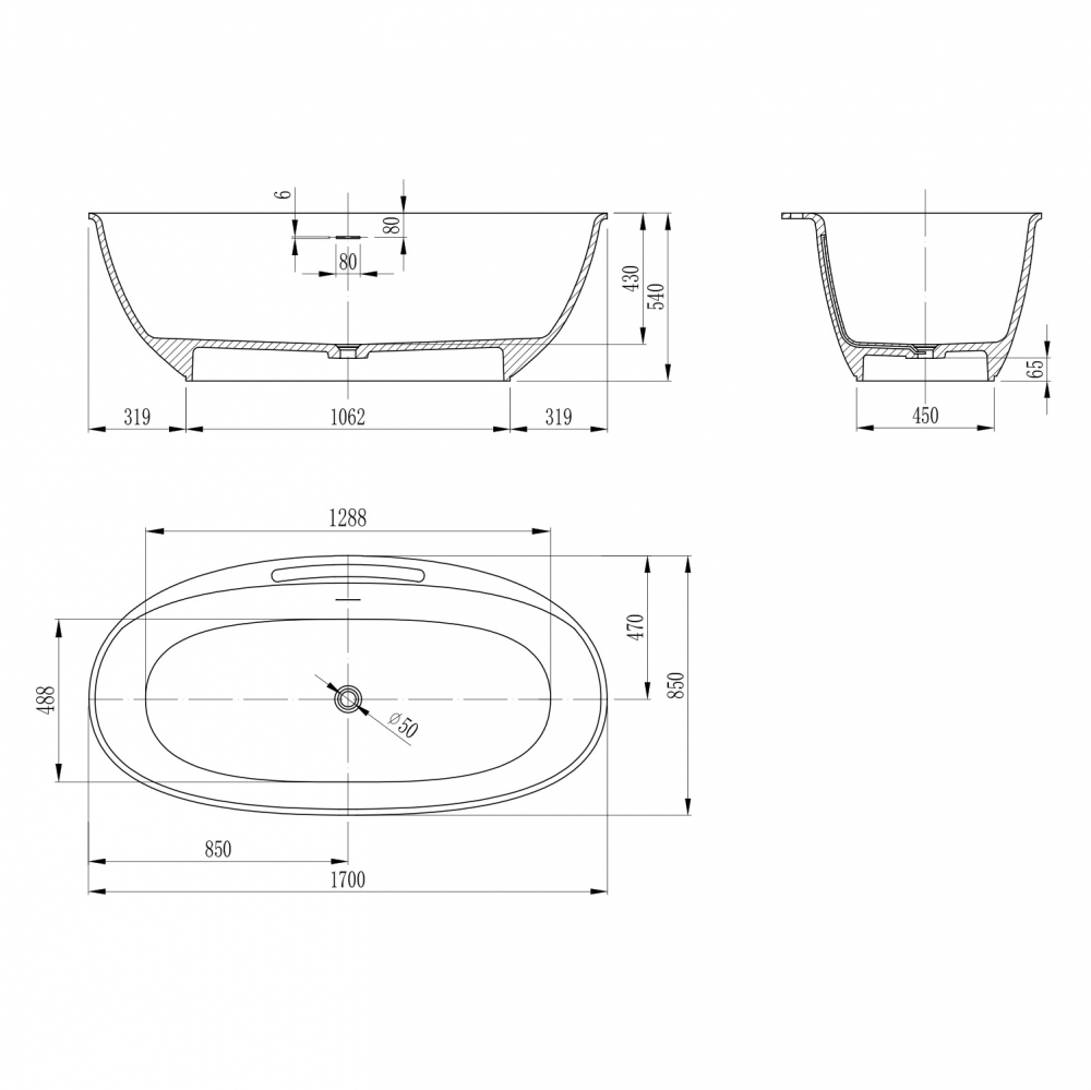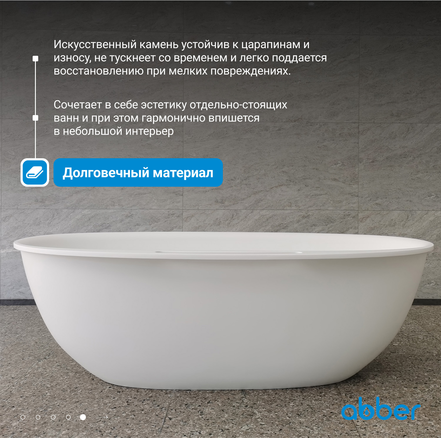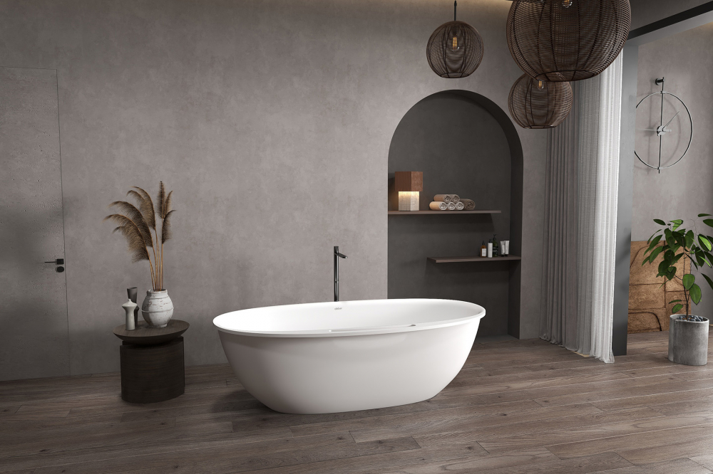 - Ванна из искусственного камня ABBER Stein 170х85 см белый матовый AS9631