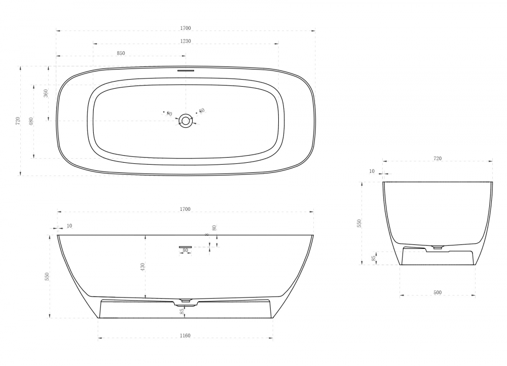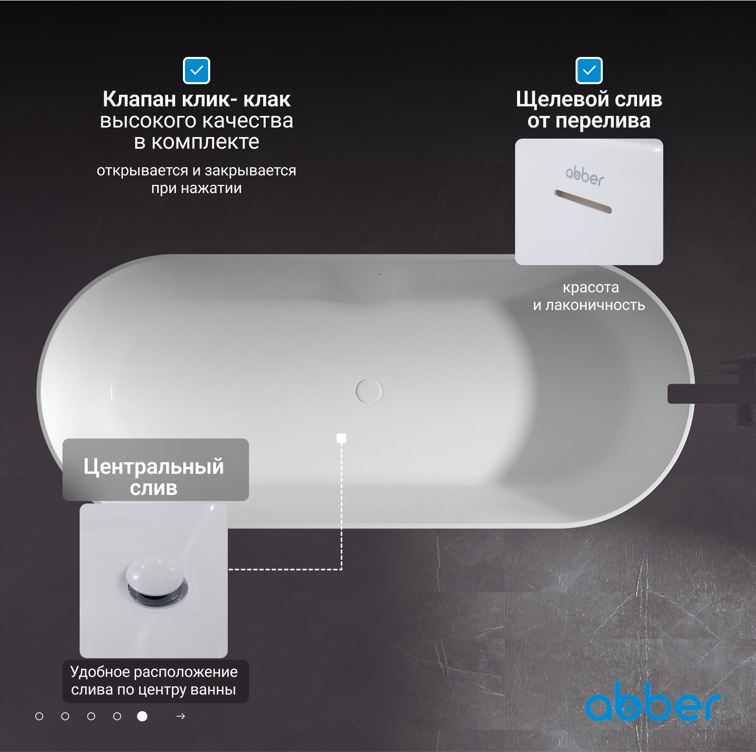 - Ванна из искусственного камня Abber Stein 180х75 см белый матовый AS9614