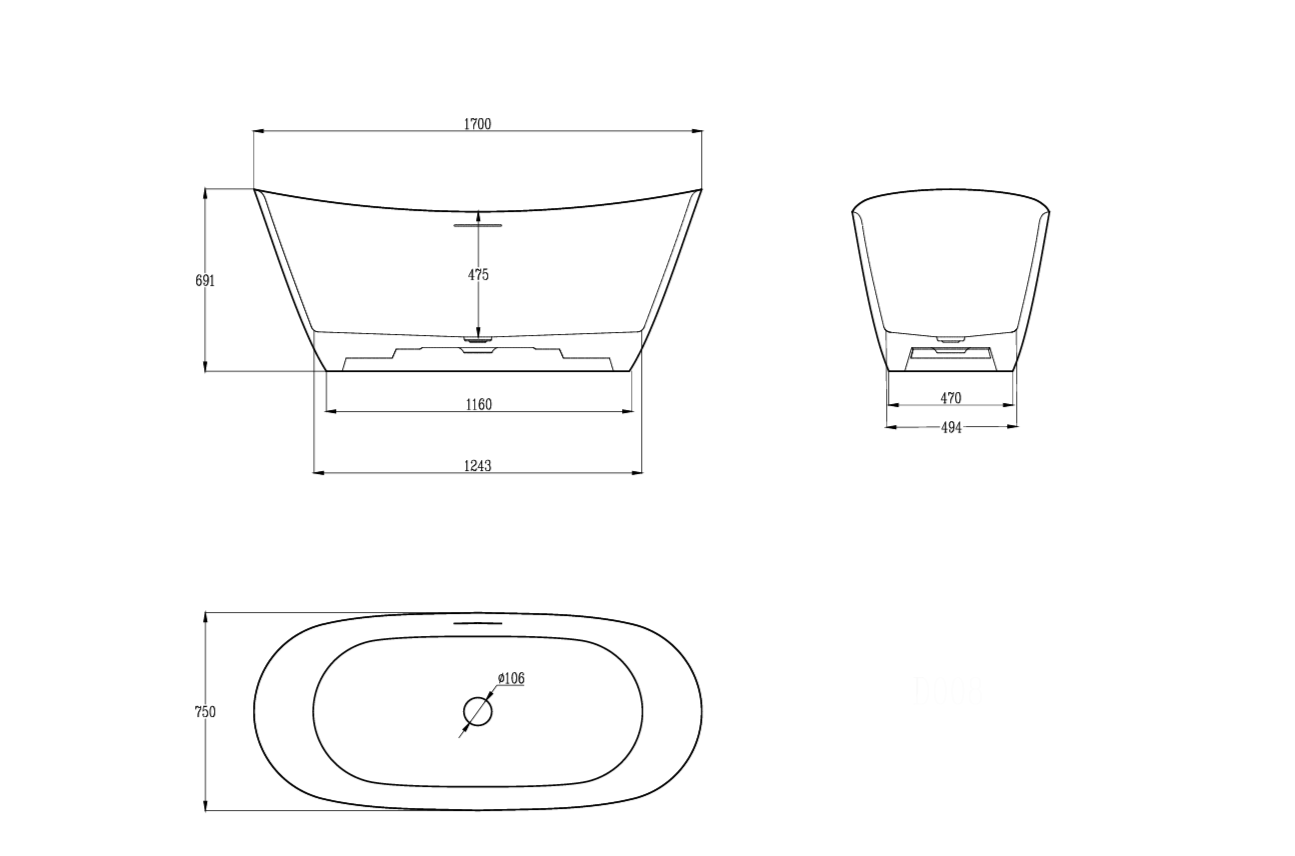 | Оснащение | Ванна, донный клапан, ножки, сифон |