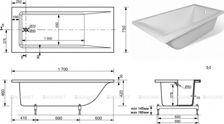 Ванна из искусственного камня Aquanet Bright Stone 170х75 см 332882