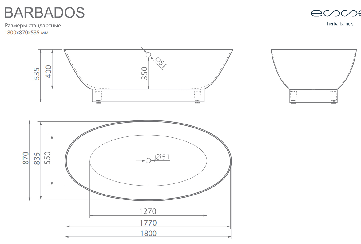 Ванна из искусственного камня ESSE Barbados 180x87 см EBAR1800