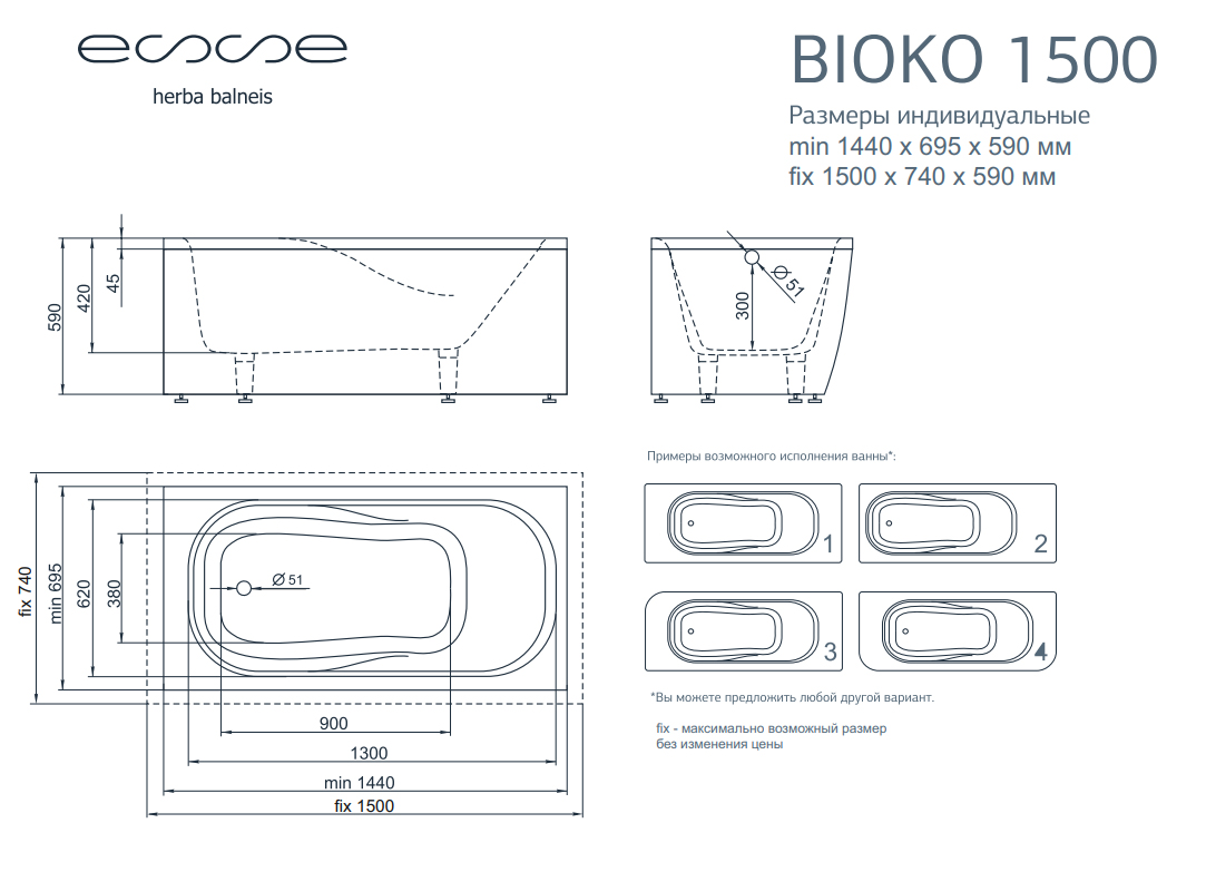 Ванна из искусственного камня ESSE Bioko 150 (от 144х69,5 см) EBIO1440