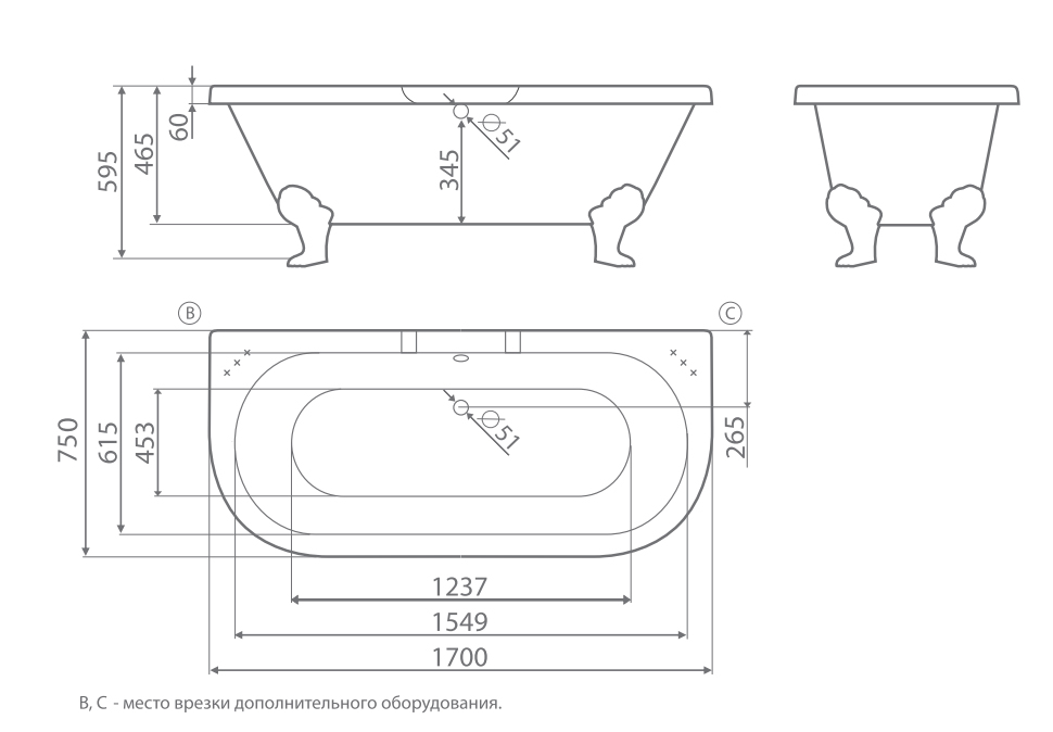 Ванна из искусственного камня ESSE Capri 170x75 см ECAP1700