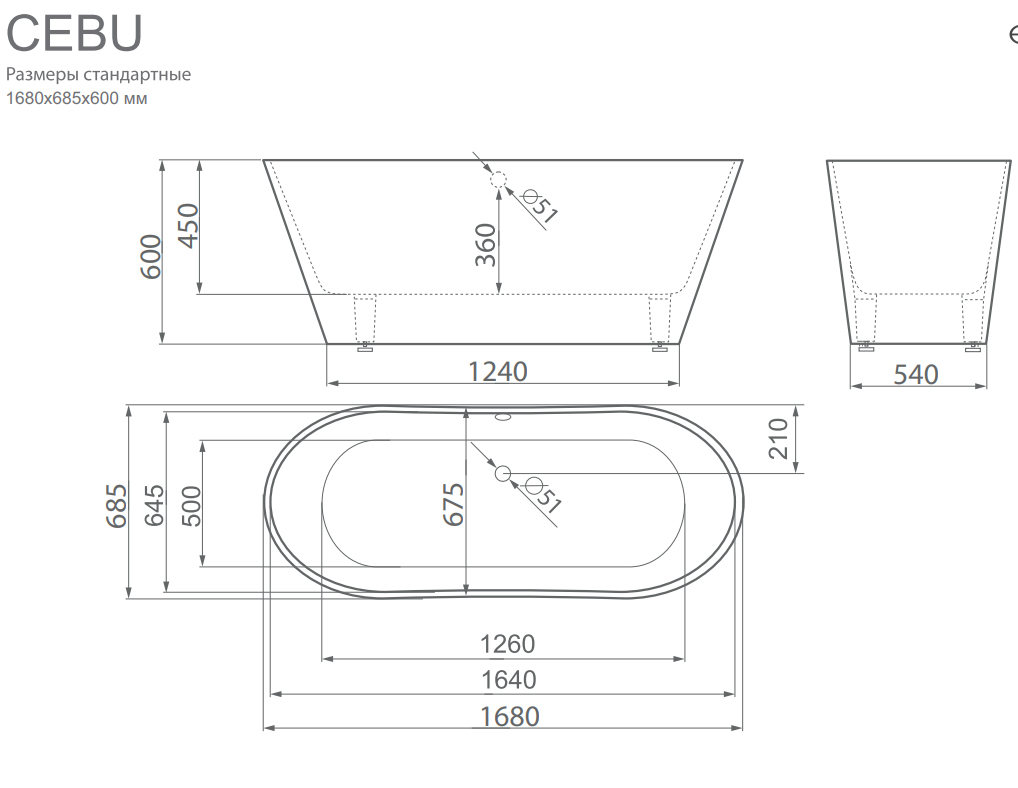 Ванна из искусственного камня ESSE Cebu 168х68,5 см ECEB1680