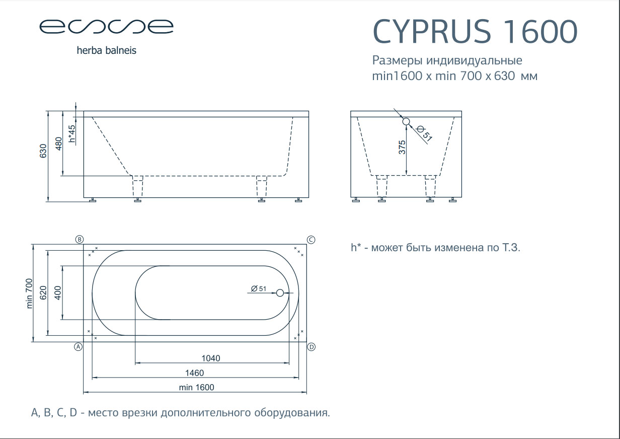 Ванна из искусственного камня ESSE Cyprus от 160х70 см ECYP1600