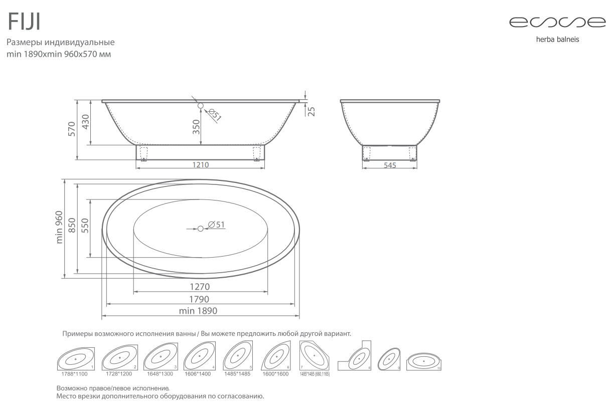 Ванна из искусственного камня ESSE Fiji от 189x96 см EFIJ1890