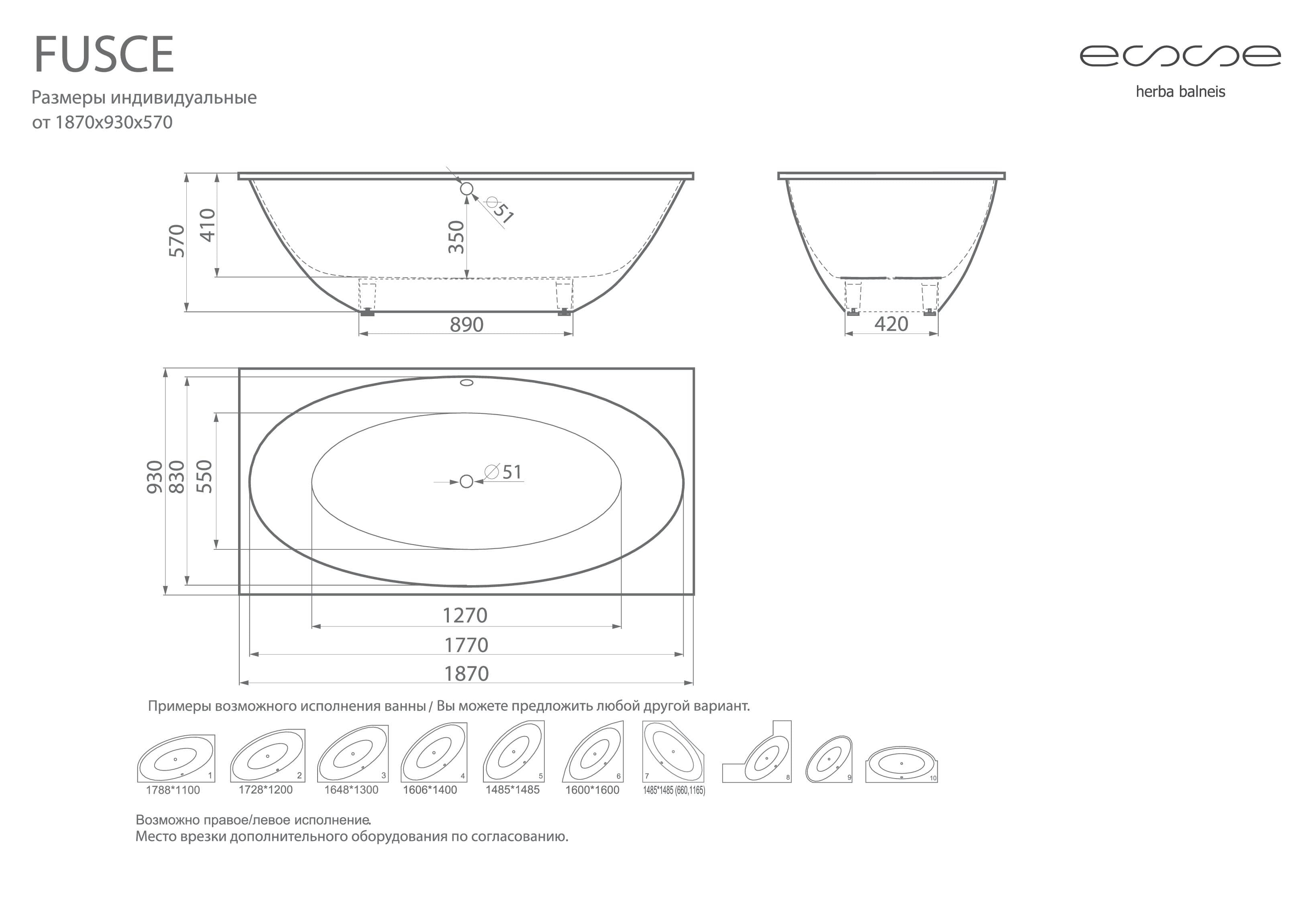 Ванна из искусственного камня ESSE Fusce от 187x93 см EFUS1870
