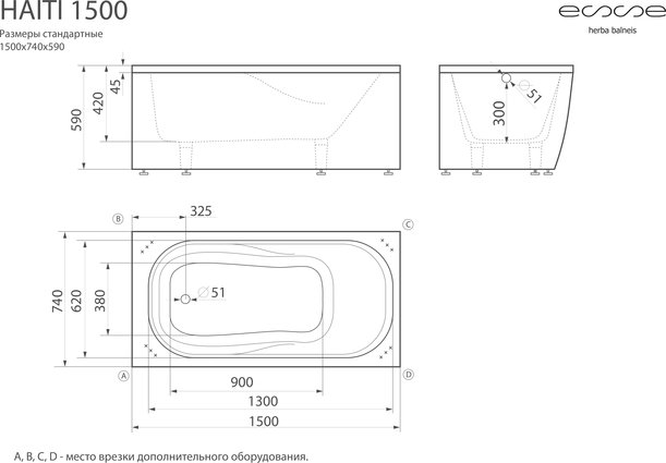 Ванна из искусственного камня ESSE Haiti 150х74 см EHAI1500