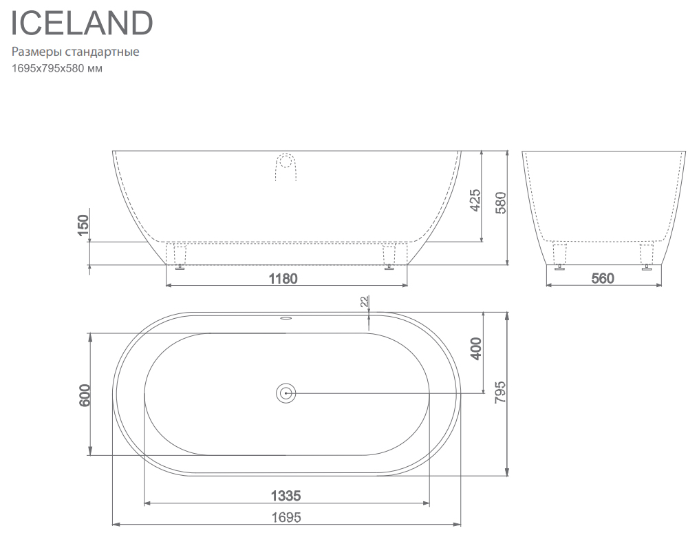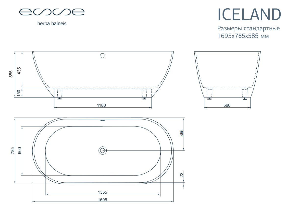 Ванна из искусственного камня ESSE Iceland 169,5х78,5 см EICE1695