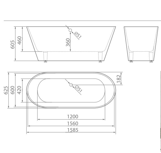 Ванна из искусственного камня ESSE Luzon 158,5х62,5 см ELUZ1585